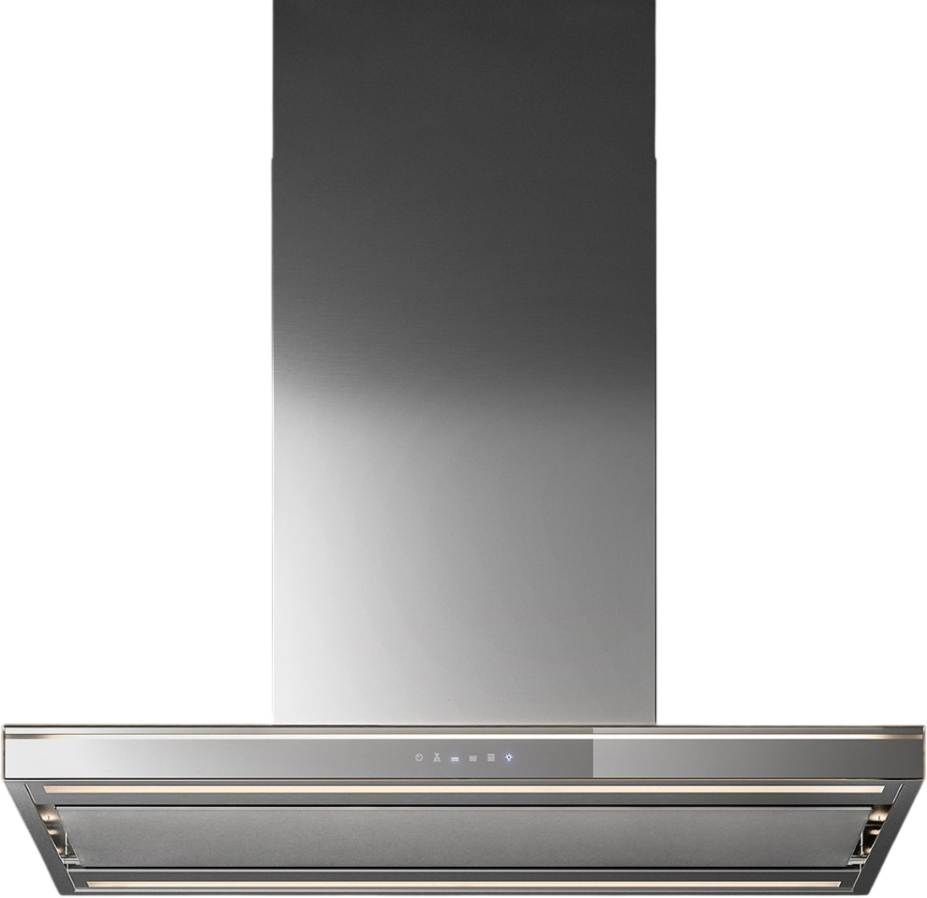 Lumina NRS cooker hood best expresses Falmec's attention to detail and manufacturing ability, emphasized in the steel frontal frame where a glass panel is perfectly placed. Available in a range of finishes it has a high quality constructive and aesthetic detail.