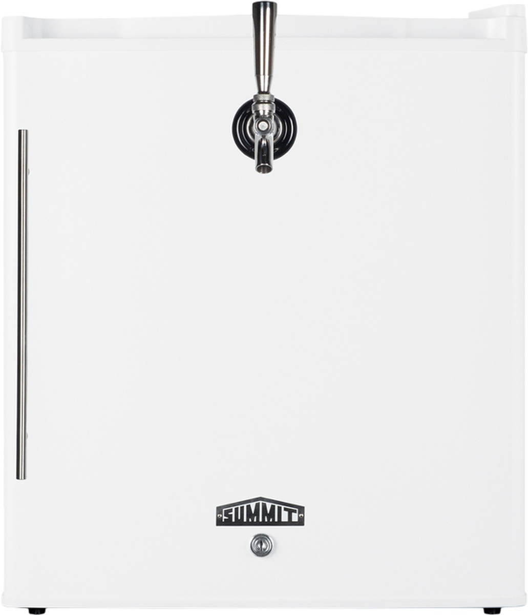 Kegerator features a pre-installed front tap accessed via the door, with all of the equipment needed to serve beer from a 2.5 gallon keg