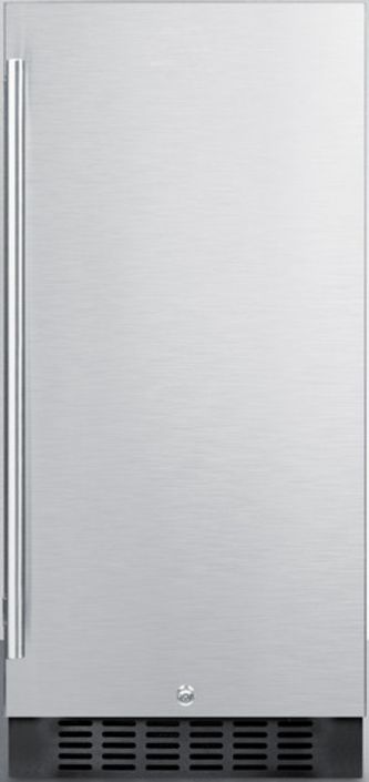 SUMMIT's selection of built-in undercounter refrigeration includes uniquely sized 15" wide units for a slim fit with user-friendly convenience. The FF1532BSS is a frost-free all-refrigerator in a slim 15" width. The front-breathing system allows built-in installation, while the fully finished black cabinet also allows freestanding use. This unit has a user reversible stainless steel wrapped door complete with a sleek handle. A factory installed lock offers added security. Inside, the FF1532BSS includes adjustable glass shelves for easy storage. Two door shelves are perfect for holding beverages and condiments, while the floor is specially slotted to store wine bottles. LED lighting provides an attractive presentation inside the 3 cu.ft. interior. The digital thermostat features a readout in Celsius or Fahrenheit for easy and intuitive temperature control. This unit is ETL-S listed to NSF-7 commercial standards. With ideal dimensions and advanced product features, the FF1532BSS is the perfect choice for unique kitchen spaces. This unit can be paired with the matching SCFF1533BSS all-freezer as a side-by-side set or combined with our StackRack.